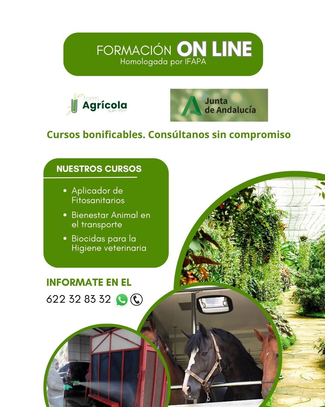 En Rocío Ayesa Formagrícola ofrecemos formación obligatoria y homologada para profesionales del sector agrícola y ganadero. Nuestros cursos están diseñados para garantizar el cumplimiento de la normativa vigente y evitar sanciones derivadas de la falta de acreditación. Todos los programas formativos están homologados por IFAPA (Instituto Andaluz de Investigación y Formación Agraria, Pesquera, Alimentaria y de Producción Ecológica) y se imparten en modalidad presencial y online, facilitando el acceso a la formación desde cualquier punto.